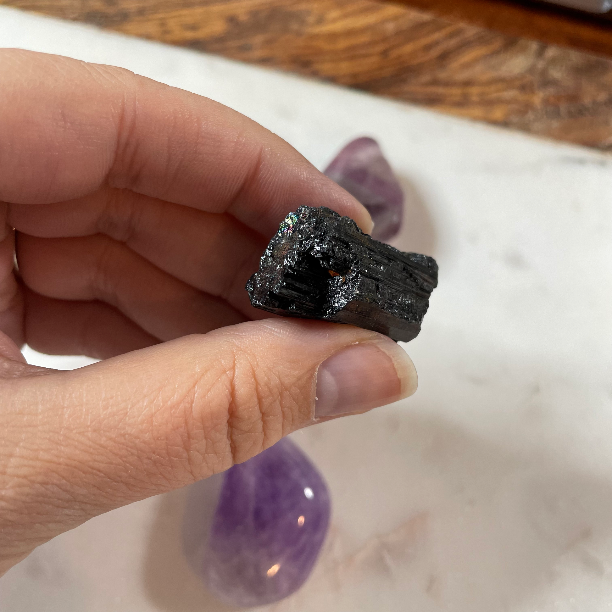 Black Tourmaline (black) should be a go-to stone for anyone who considers themselves an empath or who absorbs other people's energy. While it isn't flashy, Black Tourmaline is HIGHLY protective. This stone is about purification and grounding your energy back into your body and the earth.