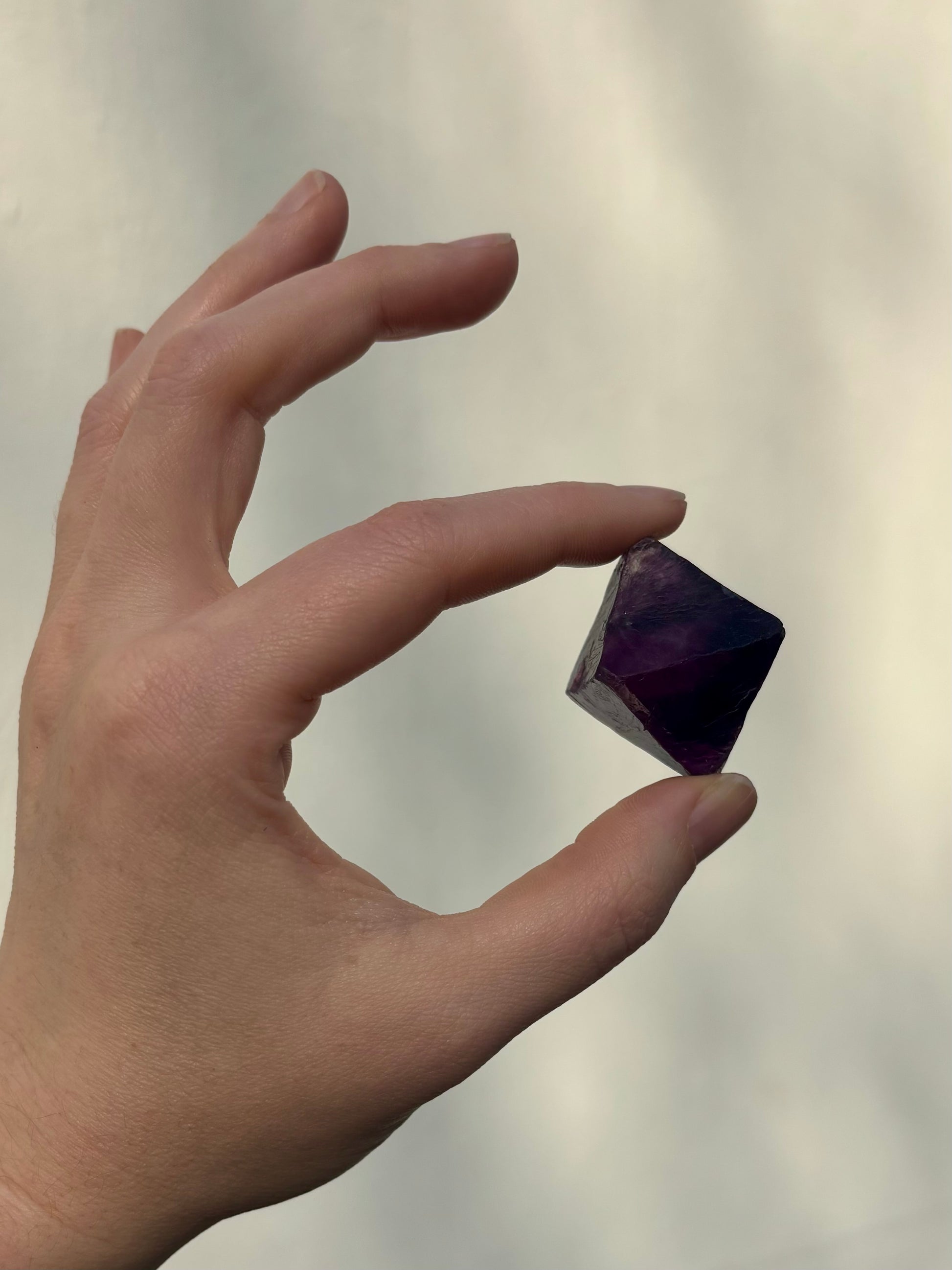 This piece of Purple Fluorite has a rare depth of color. You can peer through the stone only with extremely powerful light, such as the Sun.