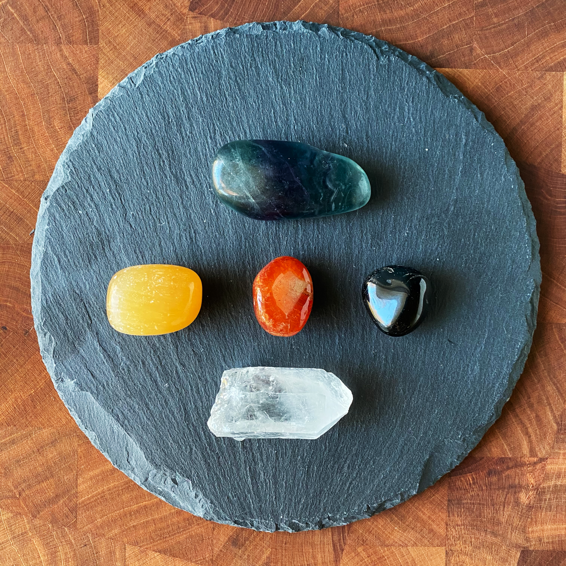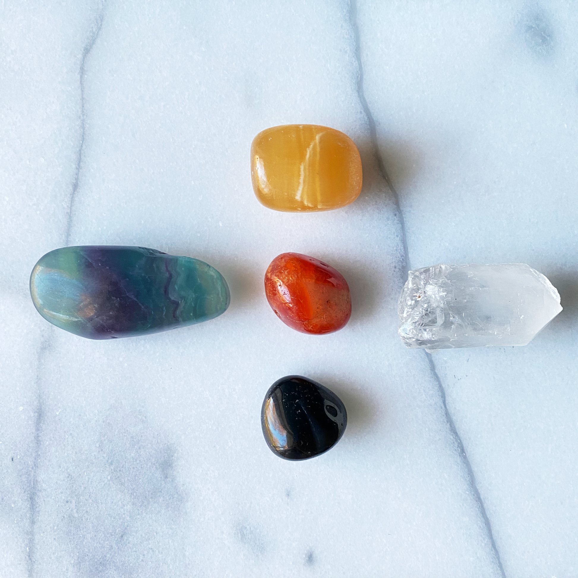 Honey Calcite (yellow) - With keywords of confidence, mental clarity, and persistence, is it any wonder these golden beauties are part of this bundle? Procrastination can be my worst enemy, so I love keeping one of these where I will see it first thing in the morning to get my energy flowing in the right direction.