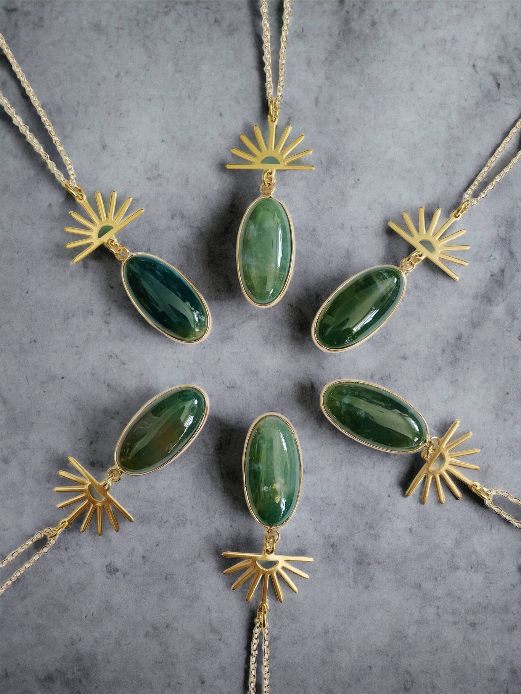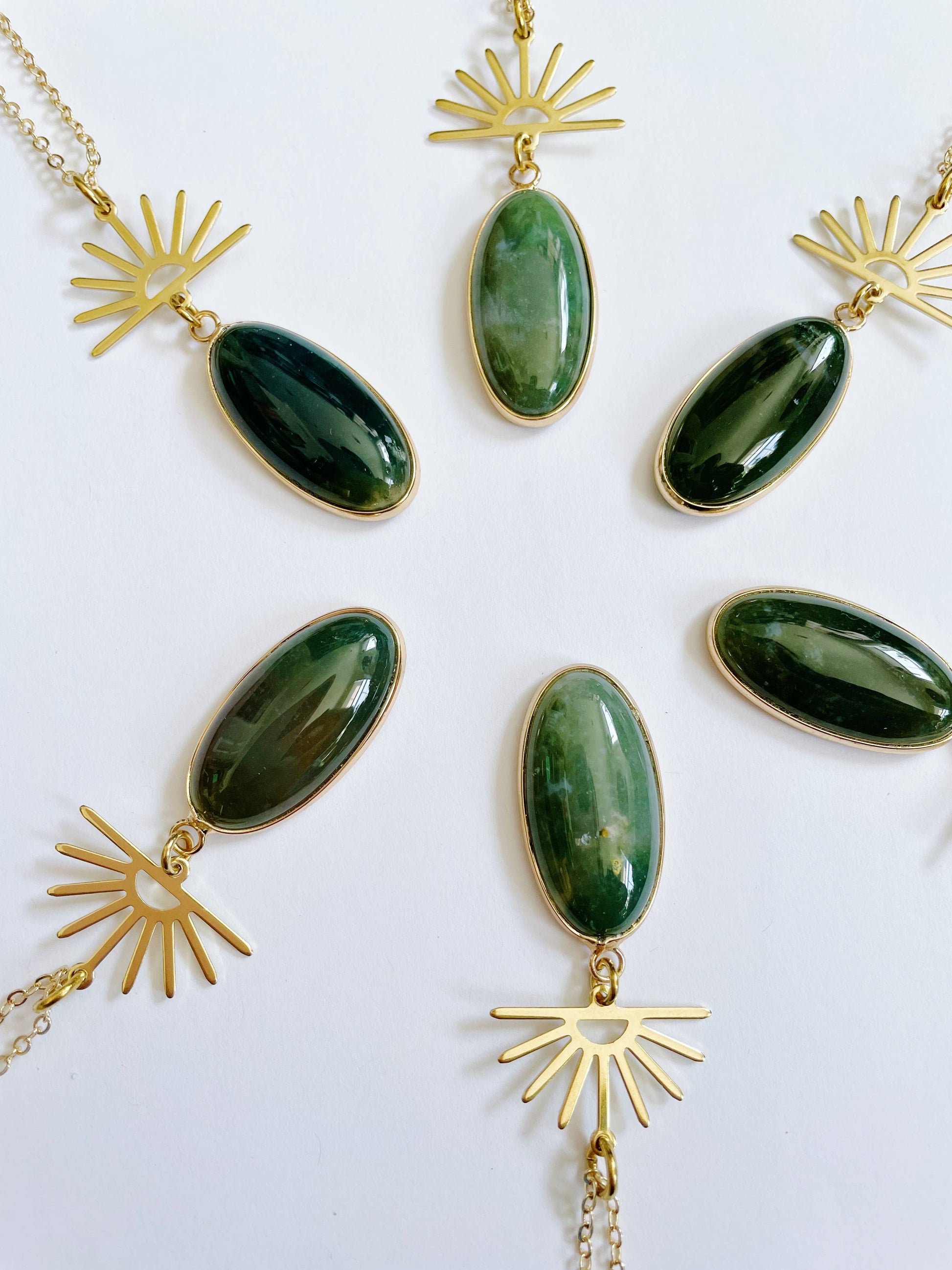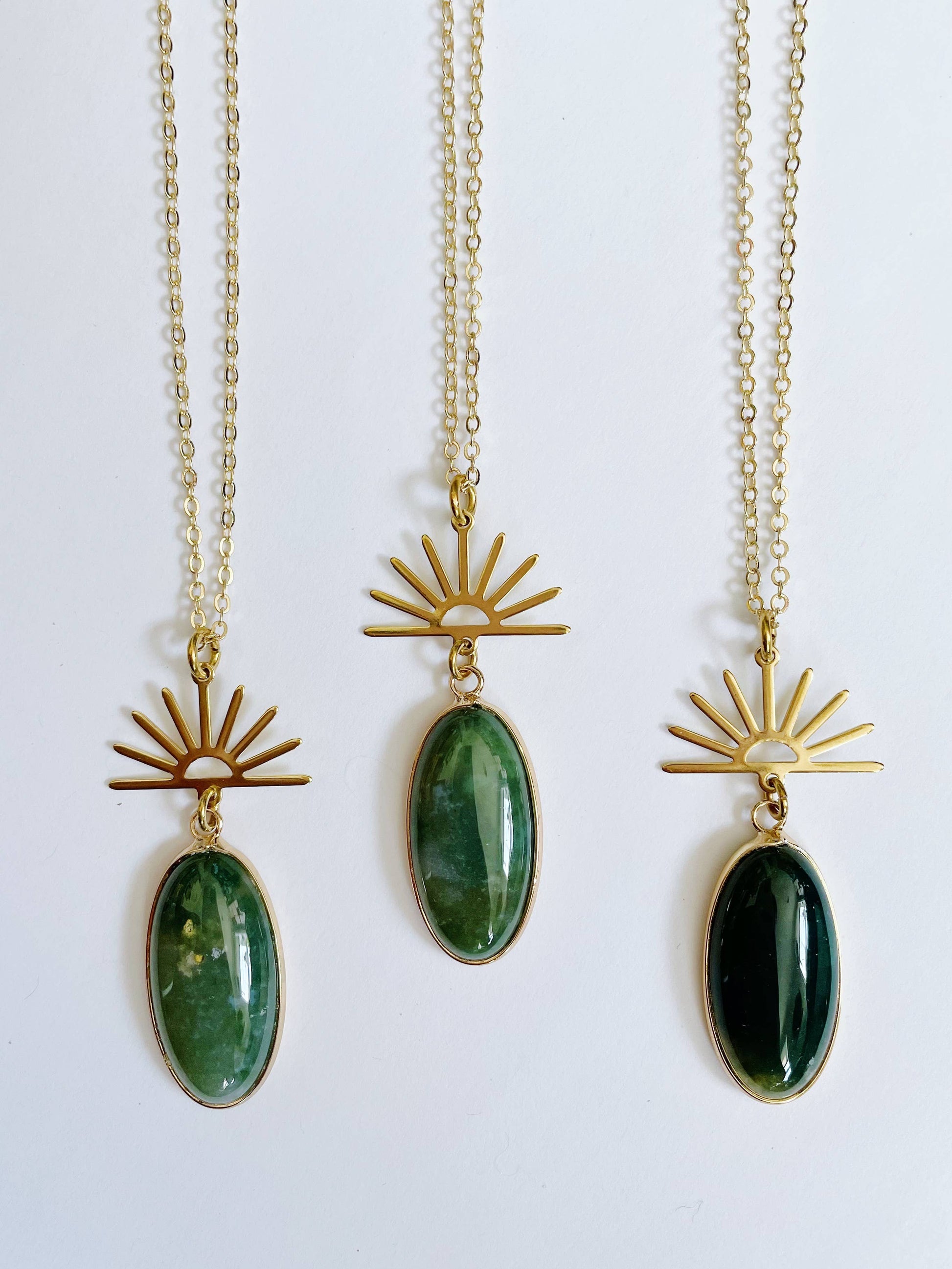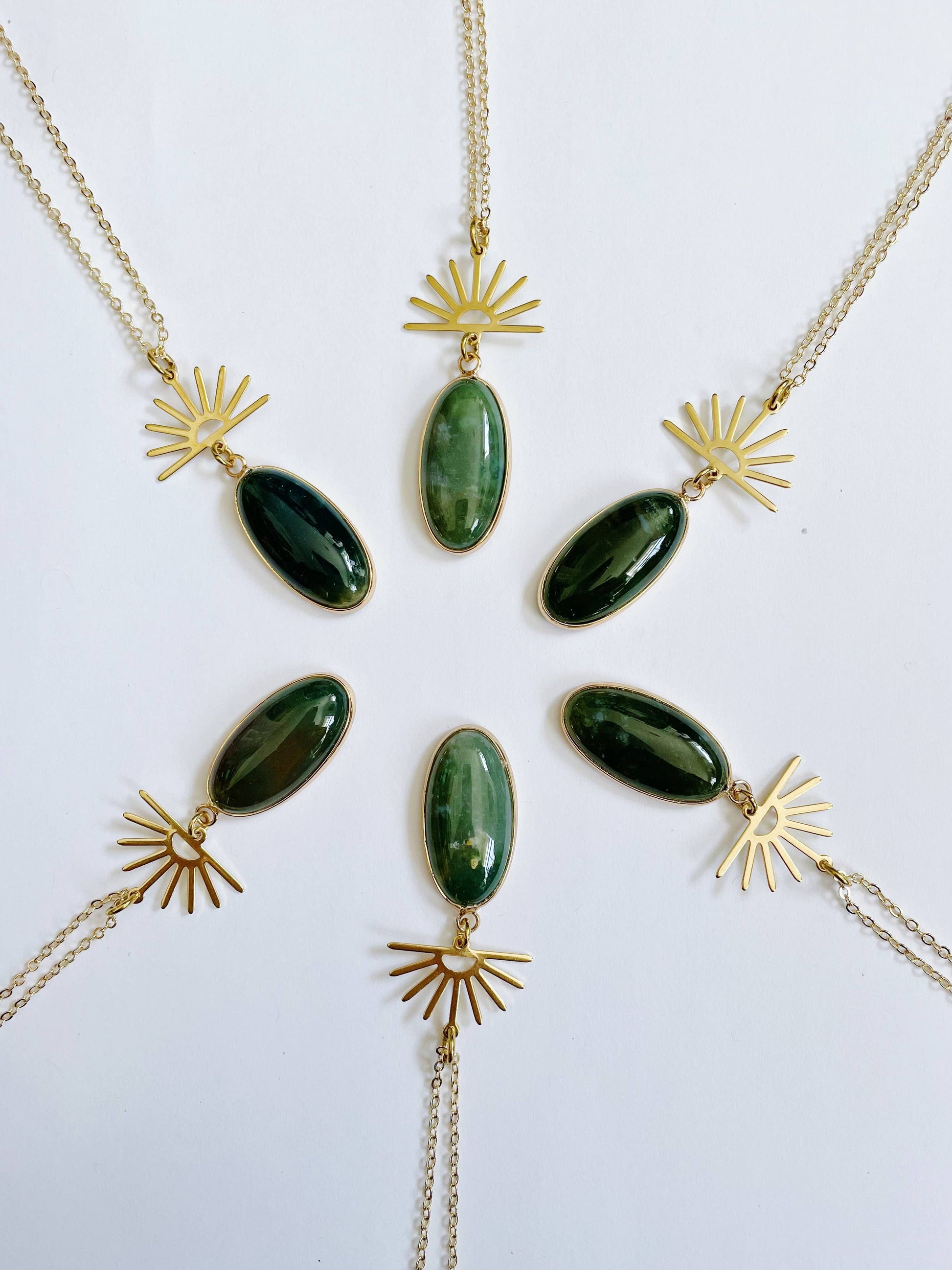 Harlow Necklace ~ Gold Plated Chain & Green Indian Agate