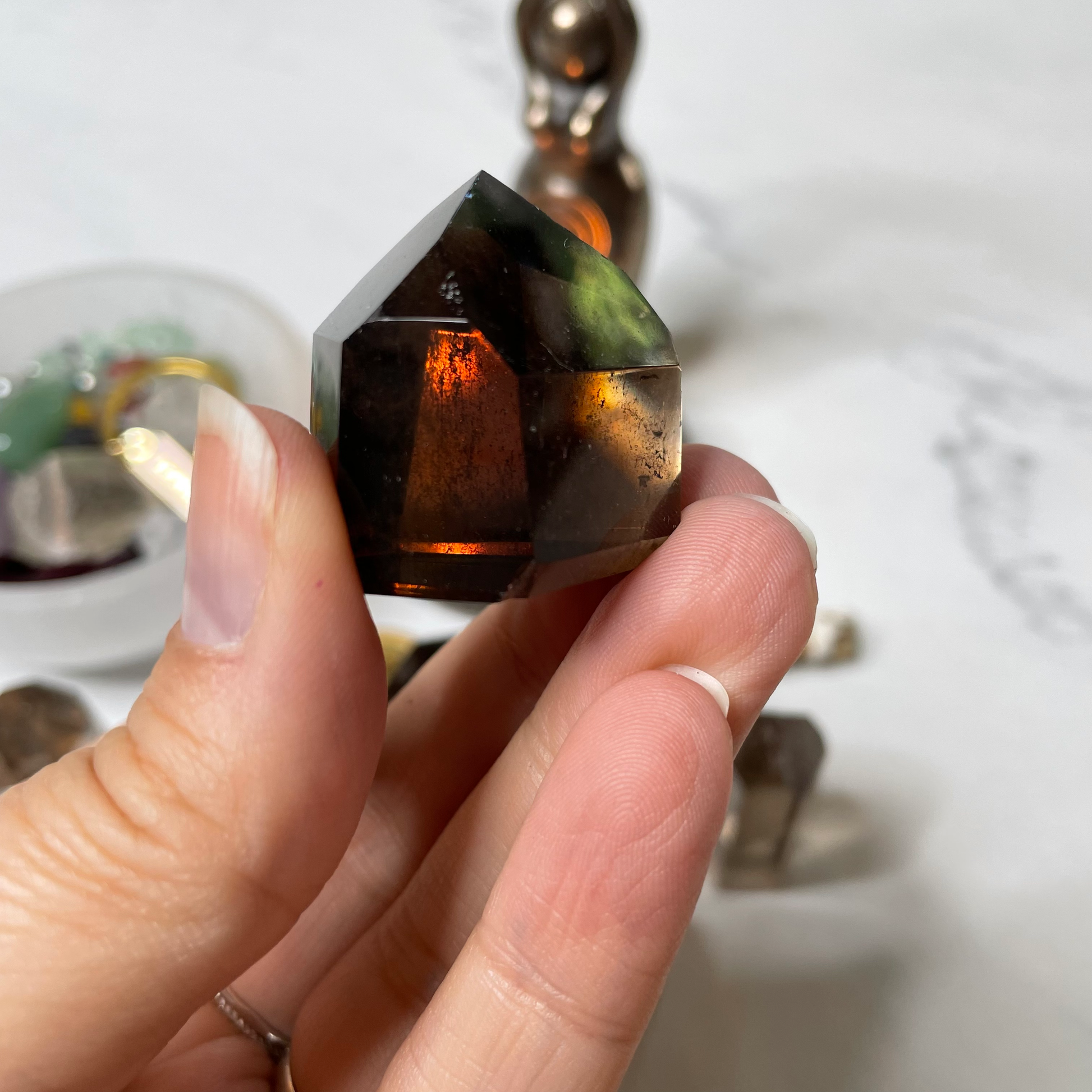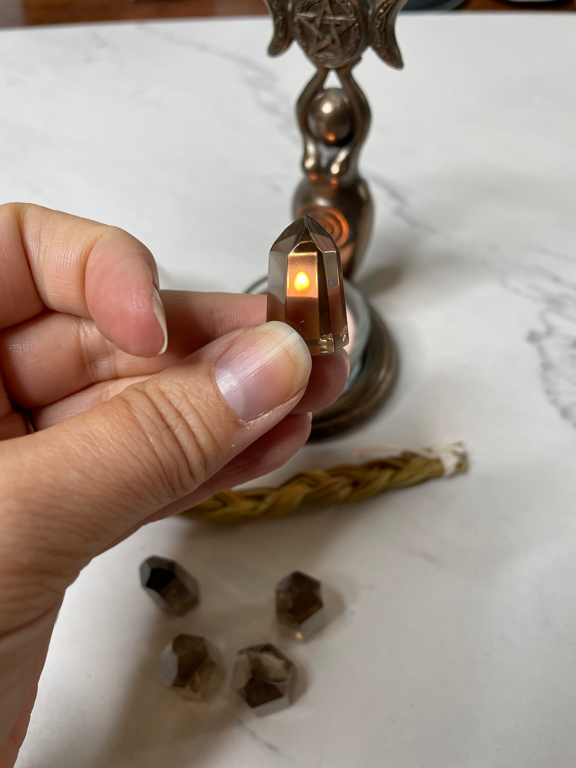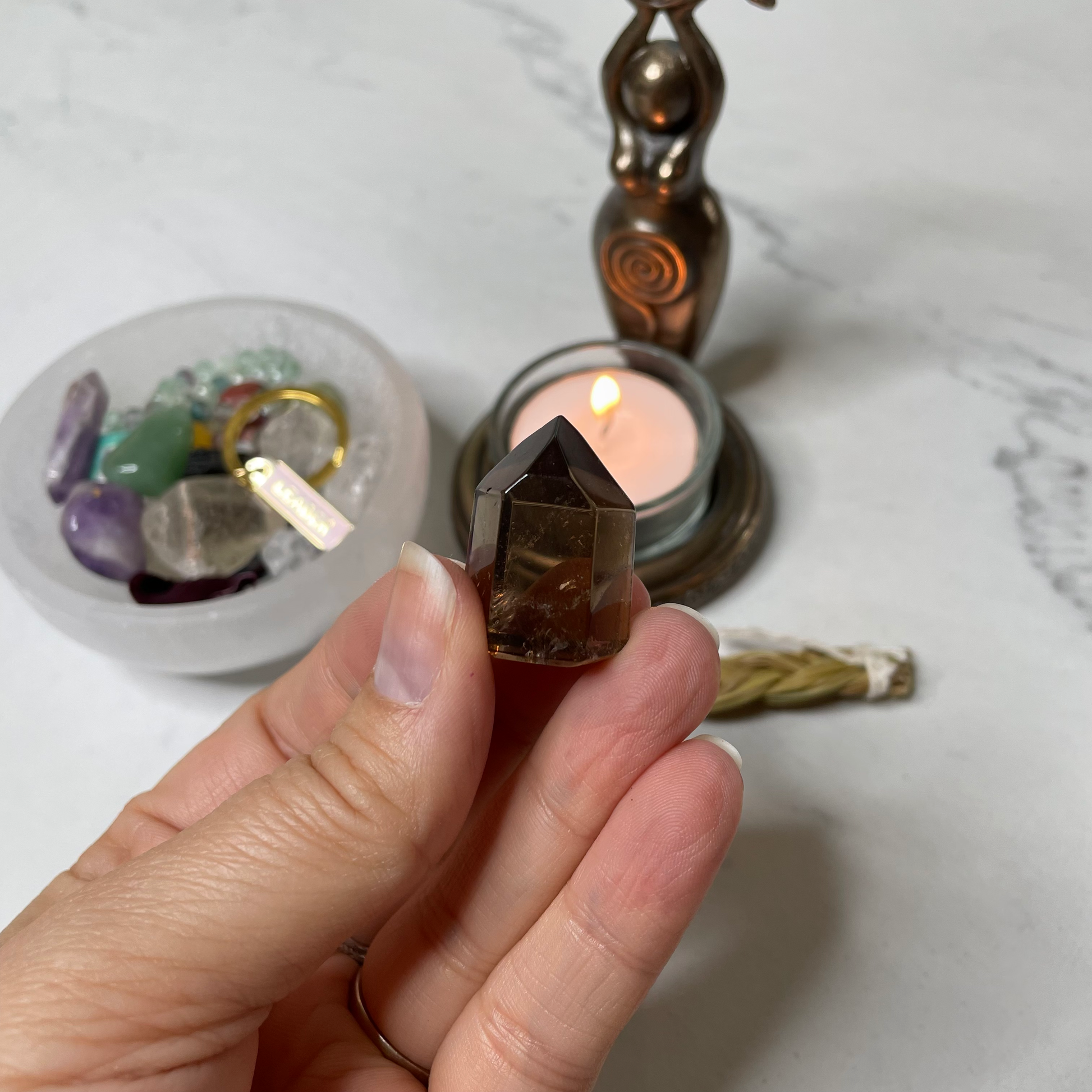 Smoky Quartz is THE ONE to grab if you need to clear out negative energy from your mind, body, or environment. I have a cluster at every entrance to my home and one that sits right under my computer monitor to cleanse the energy that both comes and goes from my space.
