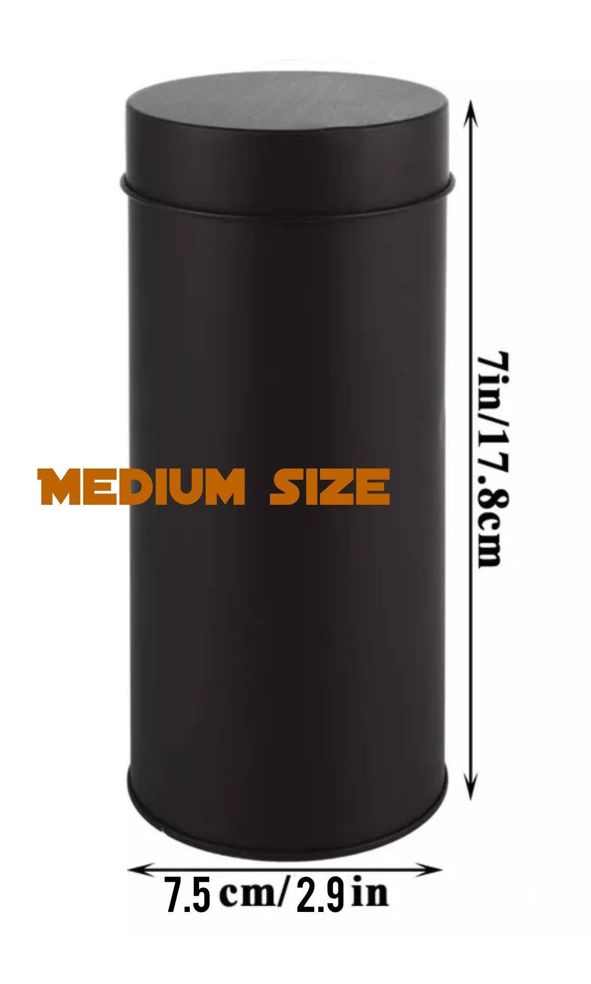 7 inch tall double lid metal tin (see photos) filled with herbal tea and beautifully labeled. Our teas are loose leaf.