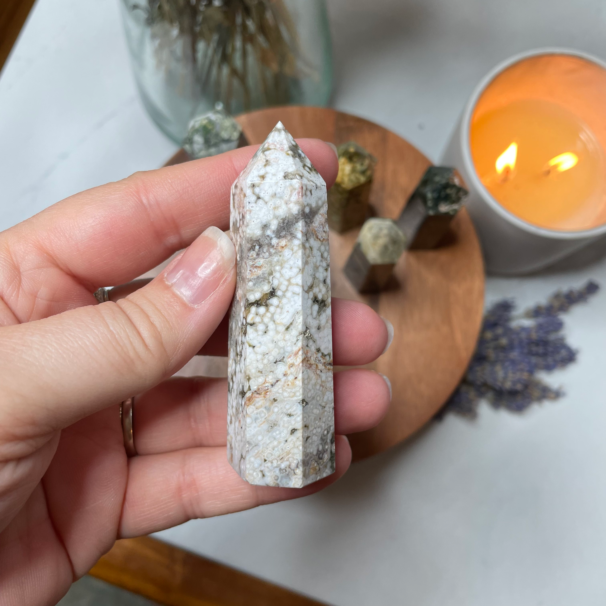 Ocean Jasper embodies the peace you feel while standing on the beach at sunrise with the waves lapping over your ankles. Eternal. Infinite. Enduring.