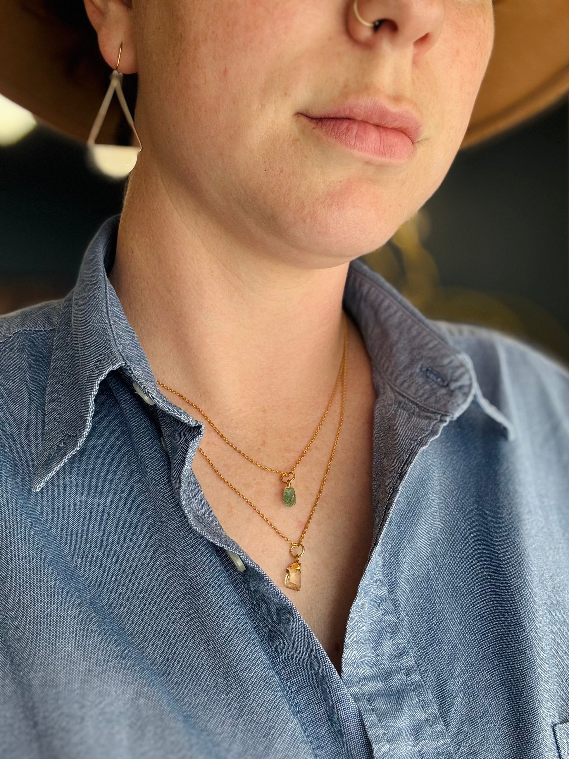 Raw Crystal Necklace - Unique Handcrafted Gemstone Jewelry. Unpolished Premium Quality Necklace. Brass Gold Rough Necklace.