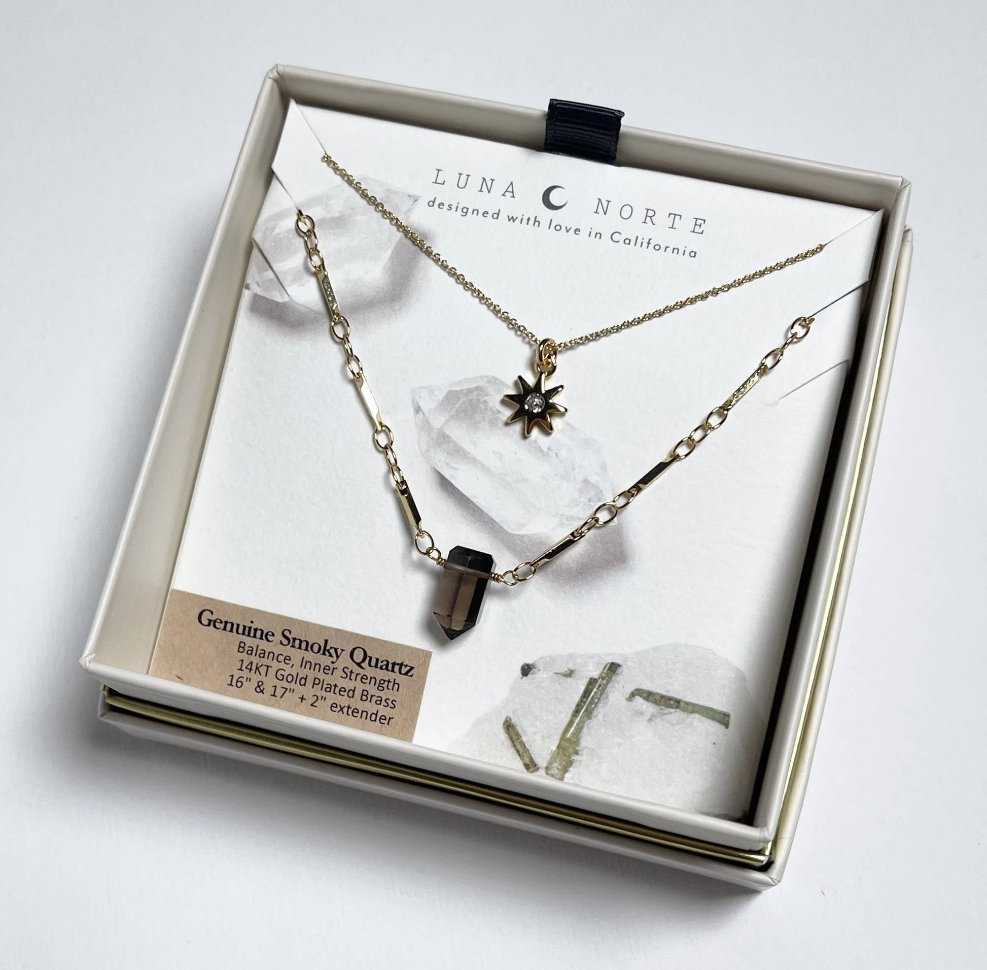 A powerful necklace set that invites you to embrace Shadow, both stylistically and personally. Smoky Quartz is known for its grounding qualities, to help tune you into your inner strength.