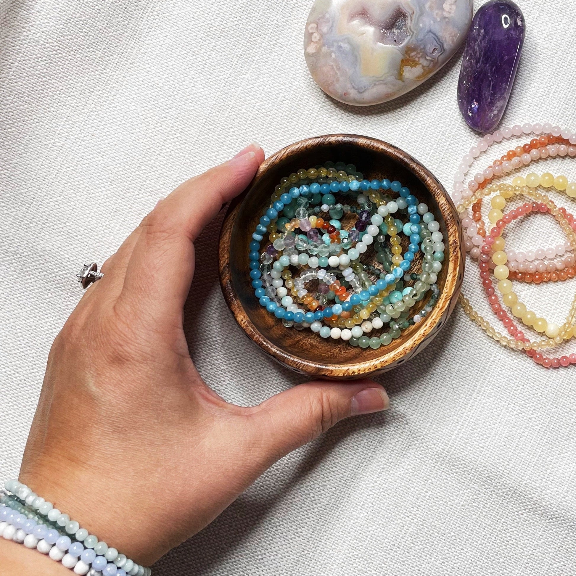 Each bowl has been energetically cleared and charged with Reiki to have a cleansing effect on anything you store in it.